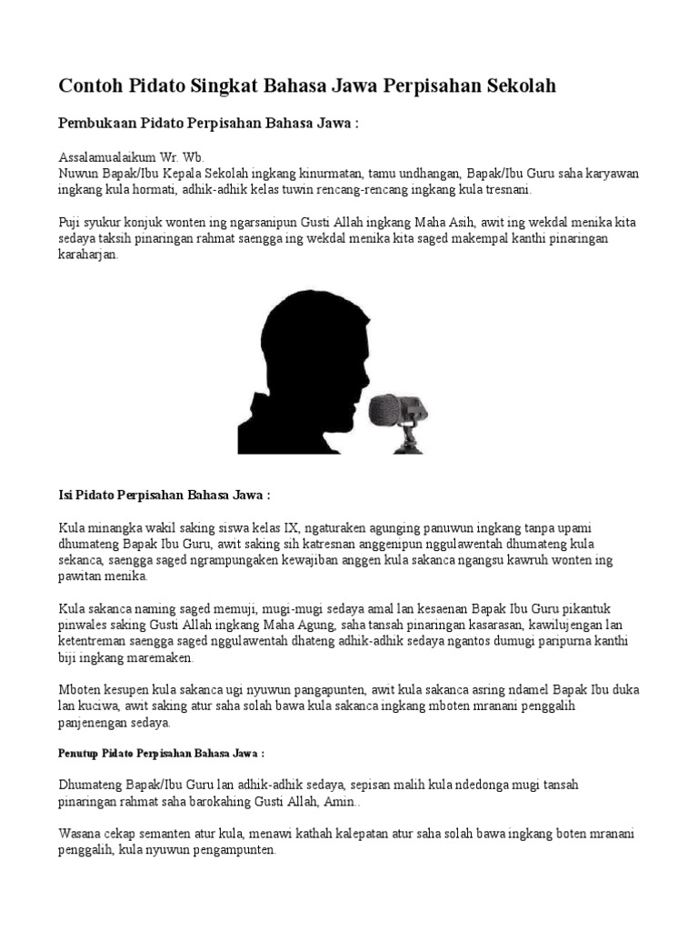 Contoh Pidato Singkat Bahasa Jawa Perpisahan Sekolah Docx