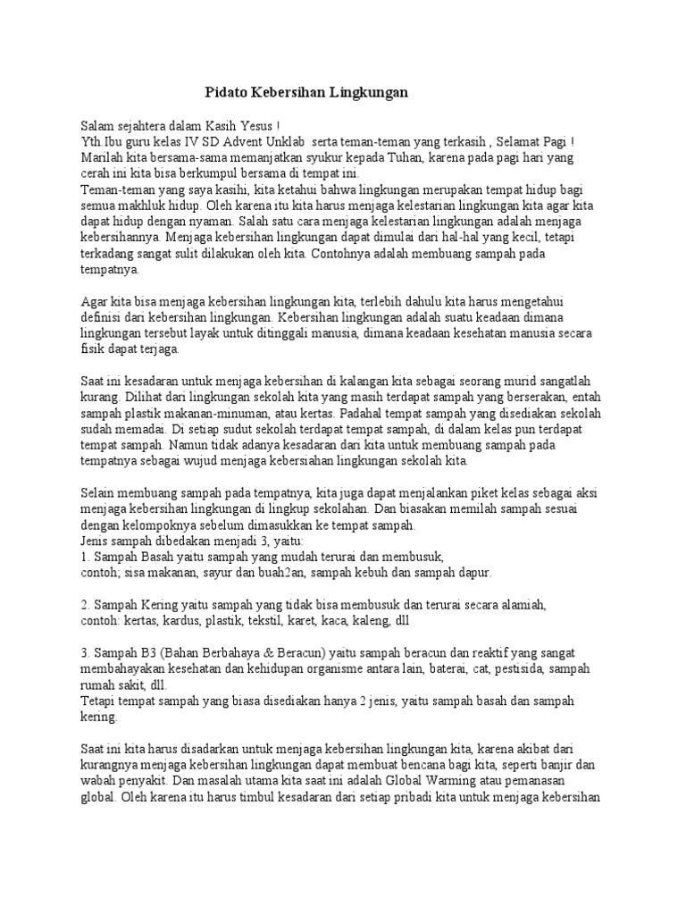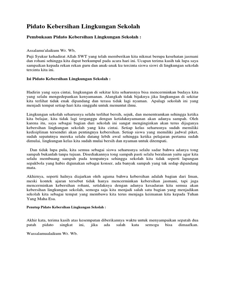 Pidato Tentang Kebersihan Lingkungan Sekolah Pdf Document